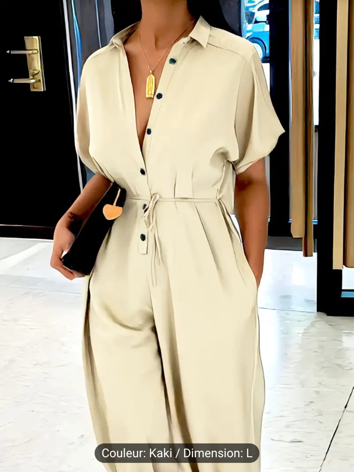 La salopette est disponible du S au XXL avec une correspondance claire : S pour tailles 36-38, M pour 40-42, L pour 44-46, XL pour 48-50, et XXL pour 52-54. Cette gamme étendue permet à chaque femme de trouver sa taille idéale.