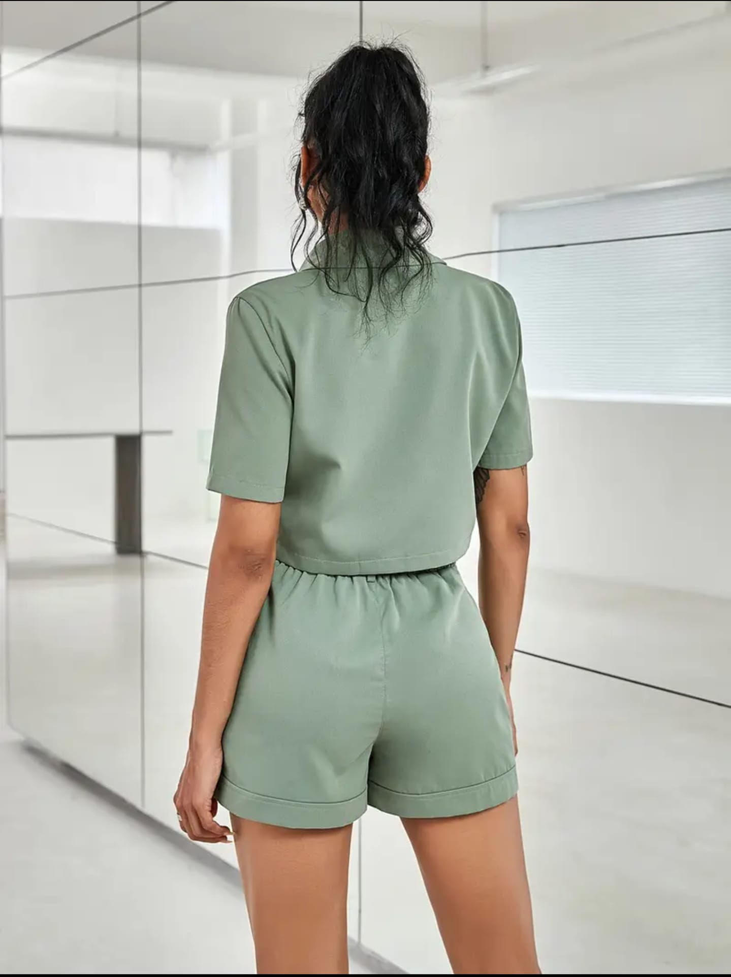 Compleu casual d’été SHEIN en vert, parfait pour la saison chaude. Ce set deux pièces moderne présente des détails pratiques avec capse et fermeture éclair. Taille XS uniquement disponible. Style décontracté et tendance pour un look estival réussi.